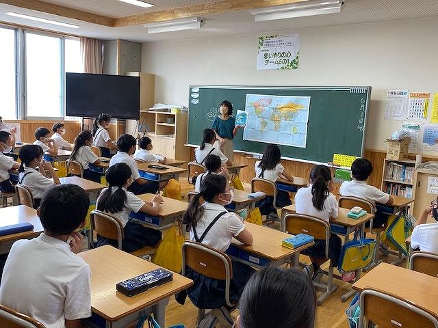 今日は5年生に「世界が100人の村だったら・・・」を読んでくださいました。