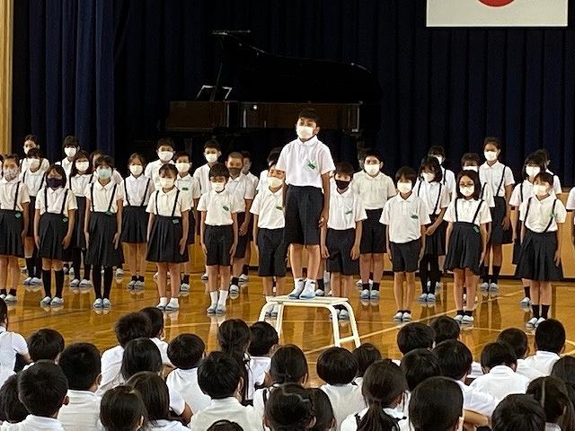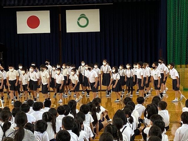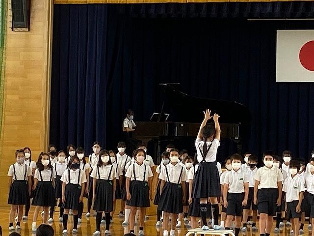 まず体育館に響き渡る美しい声で校歌を歌いました。