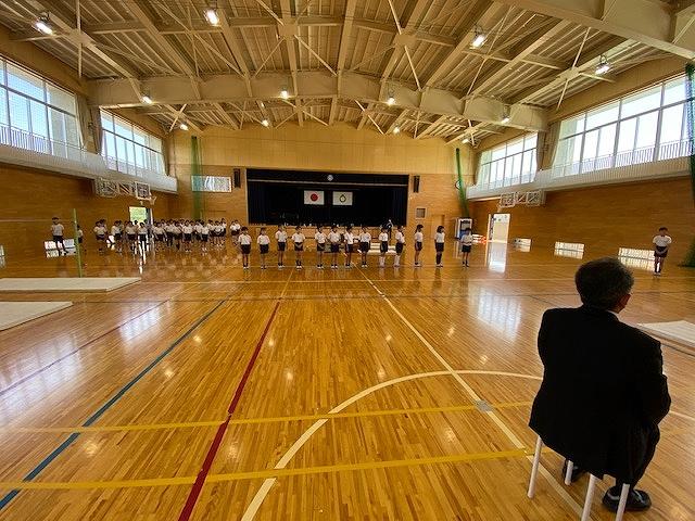 白帆台小学校の体育館で、校長先生や教頭先生の前で器械運動交歓会のビデオどりを行いました。