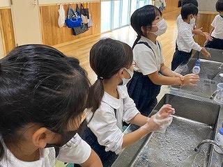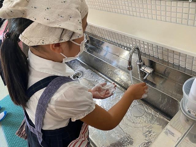 石鹸をつけて流水で30秒以上かけて手を洗いました。