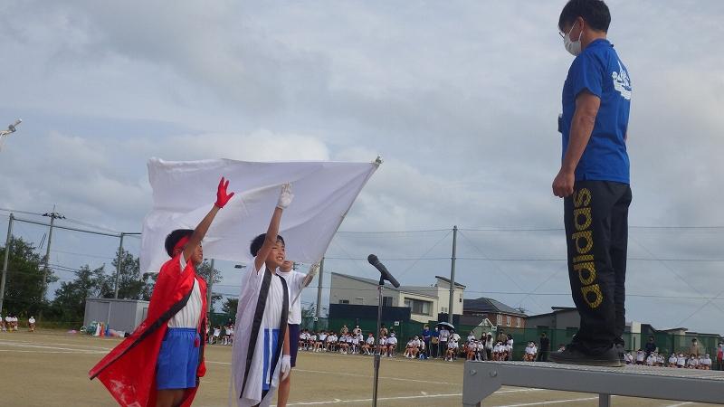 「赤白共に全力で競い合い 思い出に残る運動会 ~協力してあきらめず~」のスローガンのもと,、一人一人が個人走・低中高の表現運動・団体競技に全力で取り組んでいました。保護者の皆様、温かいご声援、ご協力、本当にありがとうございました。