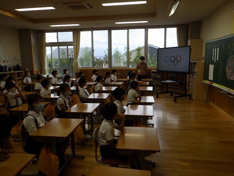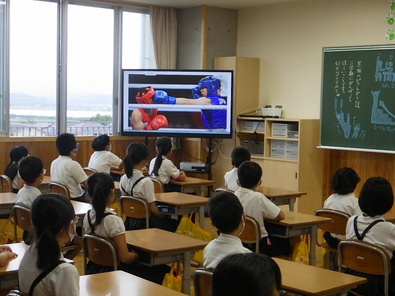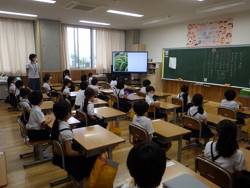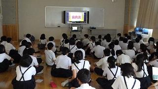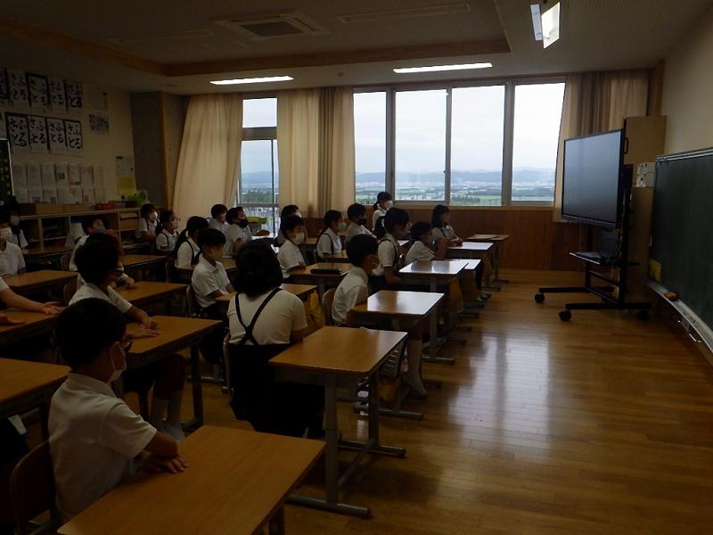 8月から新しく入った電子黒板のおかげで迫力いっぱいの画像とともに話を聞くことができました。