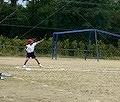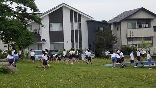 ソフトボール投げの記録アップのために、タオルを活用して「タオル体操」や「タオルスイング」を行いました。