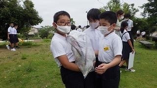 6月・7月は、企画委員会が主催した「ごみひろいイベント」を行っています。金曜日の昼休みにボランティアを募り、学校前の第三公園のごみを集めています。第一回、第二回とたくさんの子どもたちが参加してくれ、少しの時間で多くのごみが集まりました。「みんなの公園は、みんなできれいにしませんか?」という企画委員の呼びかけのもと、子どもたちが自主的にボランティアに参加してくれました。