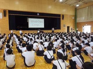 感染対策を万全にして体育館で終業式を行いました。
