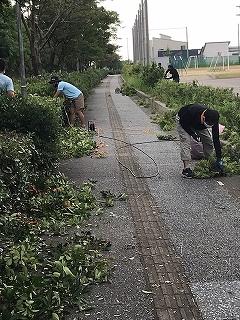 子どもの安全が第一ですので、町の確認を取ったうえで、5月、6月に職員で少しずつ刈り込みを行ってきました。