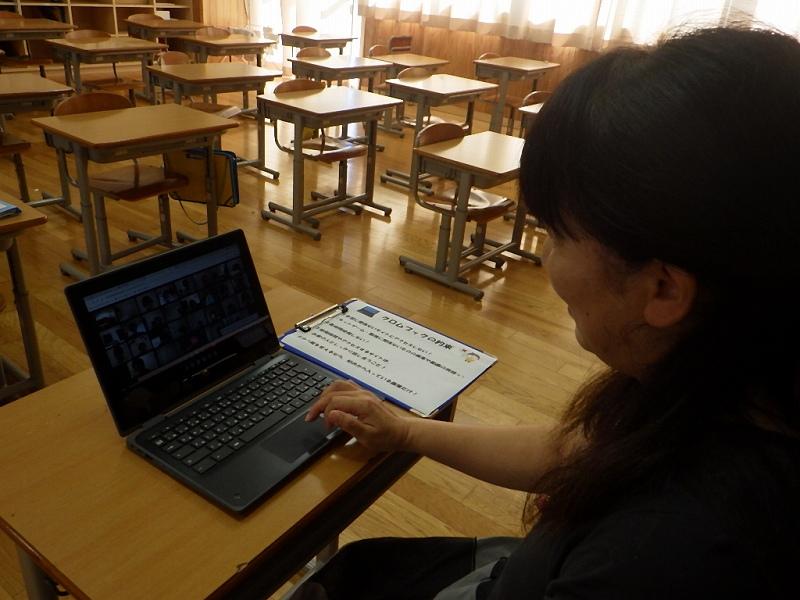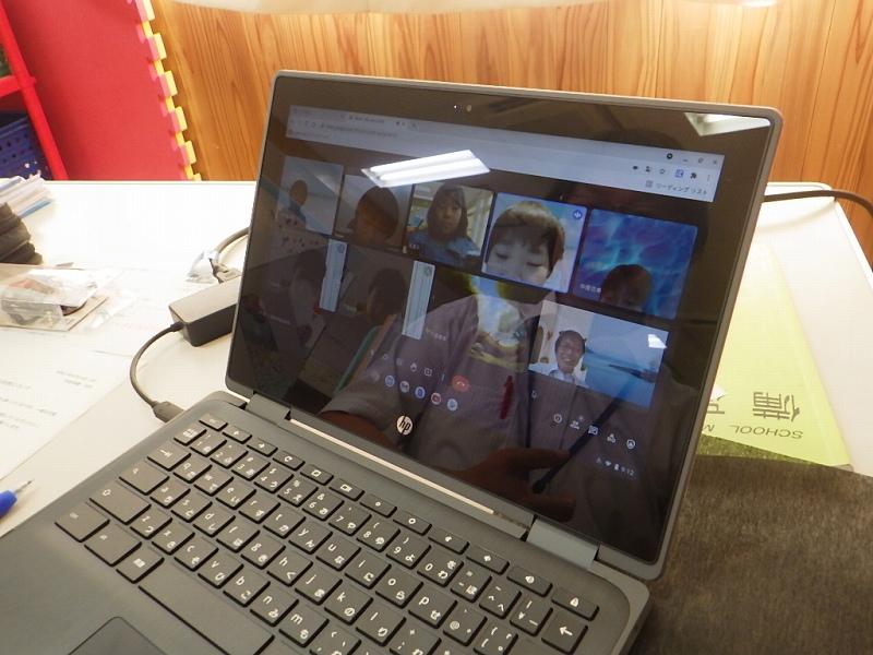 画面越しに見る先生や友達の姿がうれしくて手を振る様子が各学年で見られました。