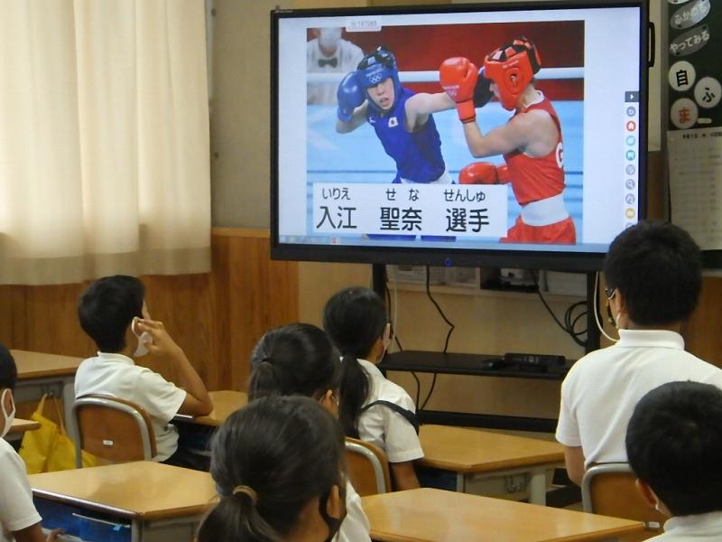 校長先生から、オリンピック金メダリストの入江聖奈選手の言葉をもとに「やればできる!顔晴ろう!」のエールがありました。