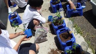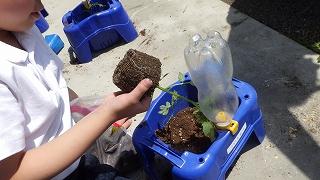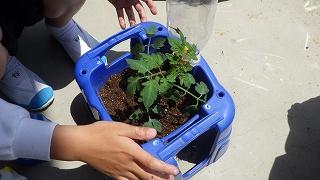 生活科でトマトの苗を植えました。