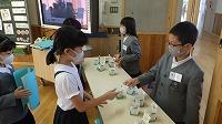 3年生の外国語活動 What do you like?「何がすき」では、自分の好きな色・食べ物・野菜・果物の言い方を学習しました。この学習の最後にお店屋さんで買い物をしようと学習のゴールを決めて、それぞれのお店屋さんを開き、自分の好きなものを集めて買い物をしました。英語でWhat color do you like?やWhat food do you like?などの英語表現を使って、上手に英語で会話をすることができました。買い物のカバンがいっぱいになったり、もっと買い物をしたいと3年生の子どもたちも楽しそうでした。