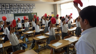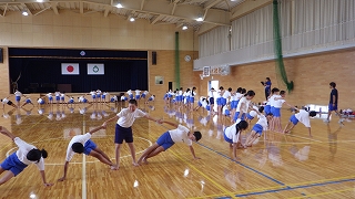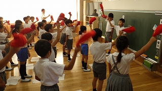朝の時間に各クラスで応援練習が行われています。
