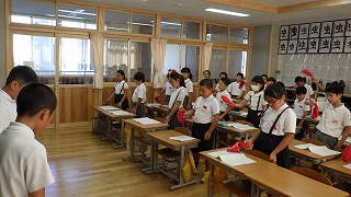 今日の昼休みに、児童代表委員会がありました。4年生以上の学級代表と各委員会の委員長が大会議室に集まって、運動会のスローガン等を話し合いました。各学級が考えてきた案の中で5の2から出された「幕開けだ、歴史を作ろう」が一番多くの支持を受けましたが、「運動会らしさを言葉に入れた方がいいのではないか」という6年学級代表の意見で、運動会らしい言葉も入れて決定する方向になりました。
