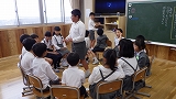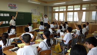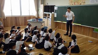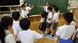 2018年7月11日 15時29分今日は、1年生の英語(ケリン先生)と6年生の英語(中畑・武田先生)がありました。どちらの学年も、英語で楽しく先生や友達とコミュニケーションをとっていました。1年生も6年生も、笑顔をキラキラ輝かせて意欲満々に取り組んでいました。