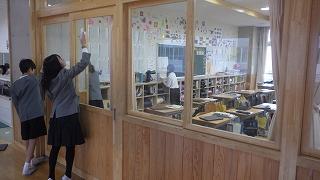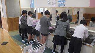 家庭科の学習で校内で汚れが気になる箇所を、方法や道具を工夫してきれいにしました。