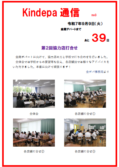 なお、「第2回協力店打ち合わせ」は9月6日(火)14時より、本校で開催予定です。