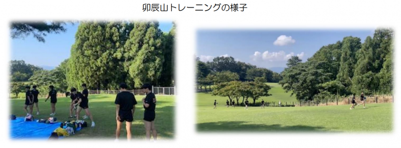 朝から卯辰山公園でトレーニングを行い、基礎体力の向上に努め、他校との練習試合を通じて実践的な力を養っています。