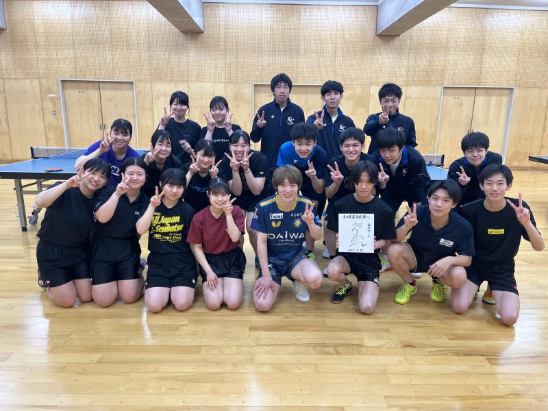 先日、本校にプロ卓球選手の松平健太選手が来校され、生徒一人ひとりに丁寧なご指導をしてくださいました。
