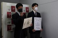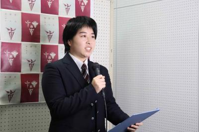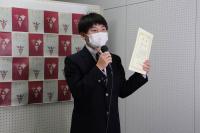 続けて行われた「お礼の言葉」では、代表して少林寺拳法部主将・小杉日菜(ひな)さんが、「今まで支えてくださった方々への感謝の気持ちを忘れず、総体・総文に向けて皆が一丸となって頑張りたいです」と感謝の気持ちを伝えました。