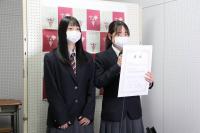 【全国大会への意気込みを語る女子バレーボール部・田中向菜主将(3年・右)と、櫻井花菜子副主将(3年・左)】
