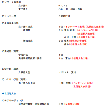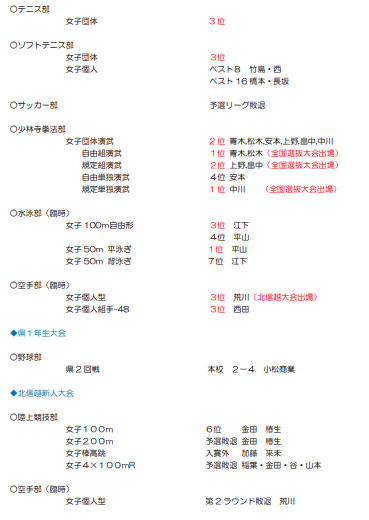 なお、各部活動の大会結果については、後日、改めて掲載いたします。