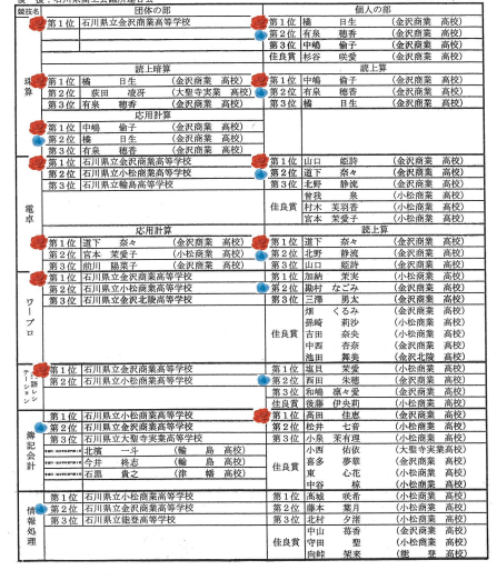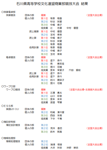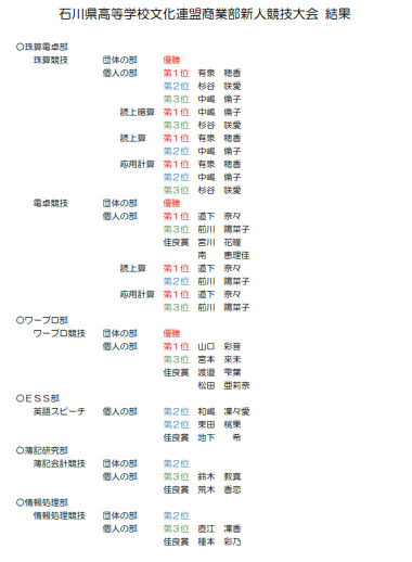 令和6年度石川県高文連商業部競技大会 成績一覧