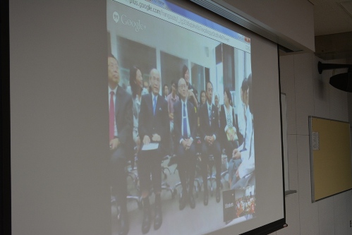 平成26年10月17日(金)、シンガポール研修3日目の1年生は、訪問先のテマセクポリテクニックで、石川県紹介のプレゼンを行いました。谷本正憲石川県知事も山本正弘校長と共に、生徒のプレゼンをご覧になりました。同時刻金商高校では、視聴覚室で1年生の一部が、インターネットを通じて交流しました。