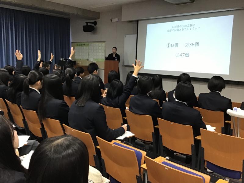 石川県の良さを再認識し、具体的にPRする方法を学んだ。実際にインバウンド向けのPRの準備に取り掛かっていることもあり、石川の良さがどこにあるか、なぜ観光客が金沢を訪れるかなどをわかりやすく教えていただいた。生徒たちも興味深く話を聞いていた。今後の観光ガイドや石川のPRにもつなげていきたい。