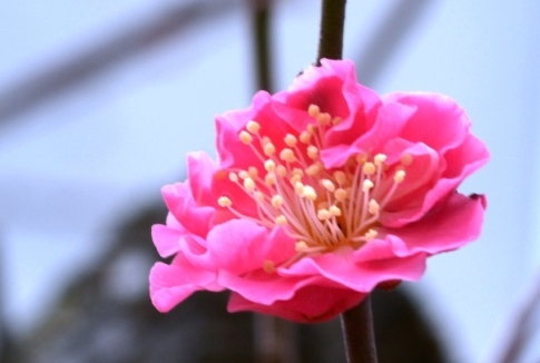 平成27年2月25日(水)、金商のウメが開花しました。このウメは、平成14年度第44回卒業生の記念樹で、旧校舎の中庭から新校舎の中庭に移されたものです。紅梅と白梅の2個体がありますが、紅梅の方が咲き始めました。