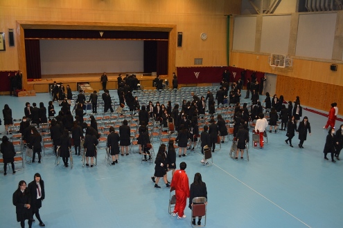 平成27年2月26日(木)期末考査後、第1体育館で、卒業式会場準備が行われました。