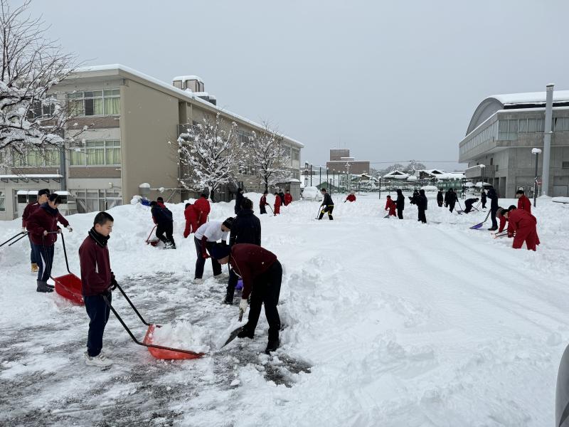 その状況に気づいた部活動の生徒たちが、7:00から次々と集まり除雪を始めてくれていました。誰に言われることもなく、顔を真っ赤にしながら除雪をしている生徒を見て頼もしいと思いました。