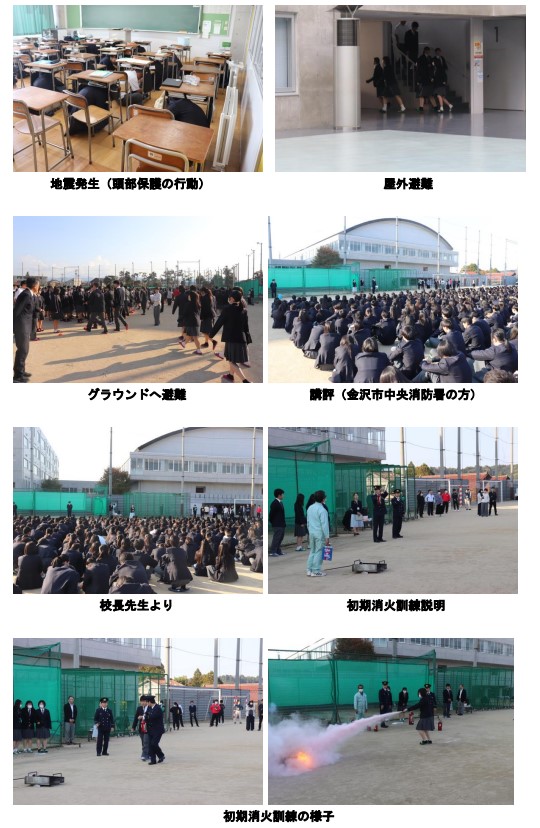 訓練に立ち会っていただいた金沢市中央消防署の方からは講評をいただくとともに、「実際に災害や火災が発生した際には、自分だけ避難するのではなく、周りの方を助ける役割を担ってほしい」ととの呼びかけもありました。