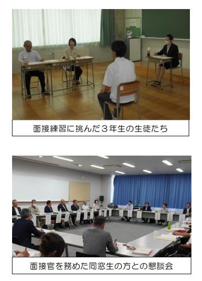 8月28日(月)・29日(火)の2日間、3年生就職希望者の進路実現に向けて、本校同窓生24名の方を招き、「同窓会による就職模擬面接」を行いました。就職希望者112名の生徒が参加し、地元企業の第一線で活躍される方との面接指導を通じて、礼法や志望理由等のご指導をいただき、9月16日(土)以降に控える「就職選考試験」に向けて有意義な時間を過ごすことができました。