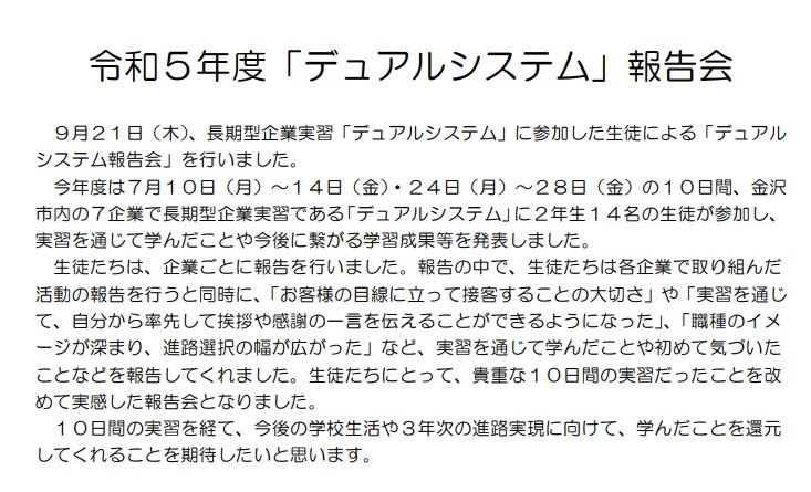 学校側から金商高校の特色などについて説明させていただき、その後校舎見学を行いました。
