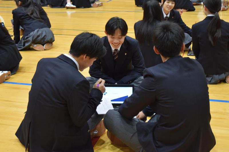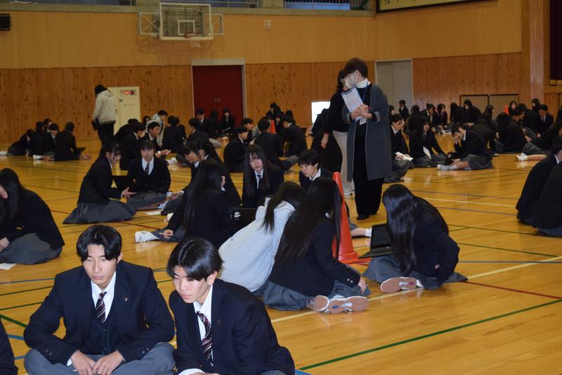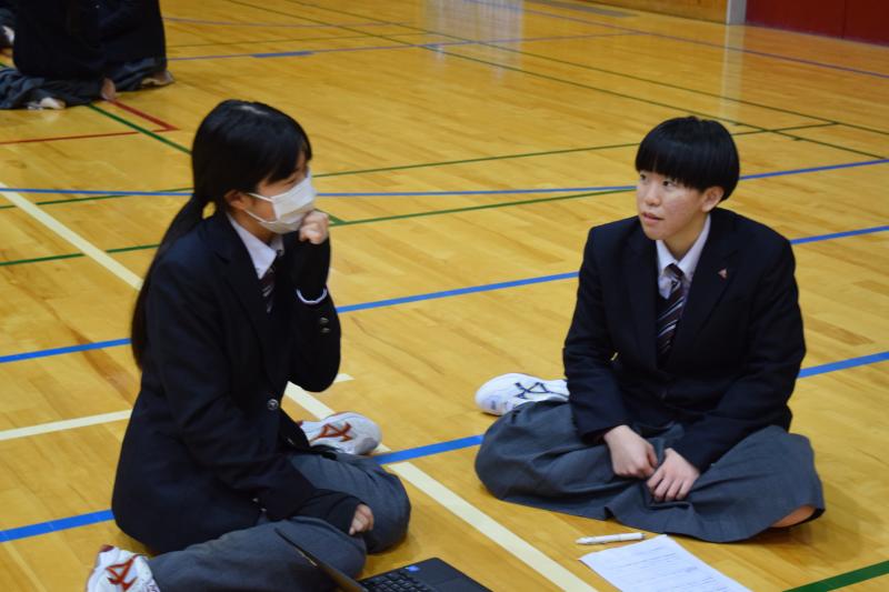 3年生が1,2年生に対して進路について3年間の振り返りを発表しました。初の試みでしたが、3年生は後輩に対して熱く語っていました。1,2年生も真剣に話を聞いてくれたおかげで、素敵な会になりました。「まだ、卒業していないからいつでも相談に乗るよ。」と話している3年生もおり、心が温かくなりました。先生方も皆さん協力してくれて改めて素敵な学校だと思いました。