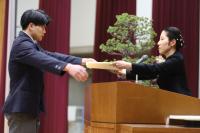 2月28日(火)に同窓会奨学奨励賞授与式ならびに同窓会入会式があり、同窓会会長吉田様から、奨学奨励賞が名誉ある賞であり、これを励みに、これからも感謝の気持ちを忘れず、社会に貢献できる人材になってほしいとの激励の言葉をいただきました。その後、受賞者を代表して、出口輝さんが感謝の言葉を述べました。