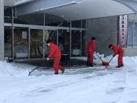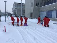 低温と大雪予報のための臨時休校が明けた1月26日(木)、朝7時ちょっと前に学校に到着すると、女子バレーボール部員4名が正門付近で雪かきをしてくれていました。