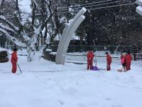 2023年1月26日 08時12分低温と大雪予報のための臨時休校が明けた1月26日(木)、朝7時ちょっと前に学校に到着すると、女子バレーボール部員4名が正門付近で雪かきをしてくれていました。