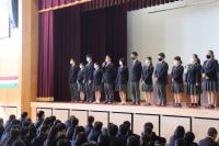 10月13日(木)6限目に「第39回金商デパート 開店式」が行われました。最初に学校長から、過去5年間の金商デパートの反省点に基づいて、デパート職員としての「仕事や接客時に必要な行動や心構えについて」の話があり、つづいて、 33Hの出口 輝デパート長の挨拶、3年生の各店長からの商品紹介などがありました。また、最後に全員で”あいさつ”の練習をして「金デパ」へ向けての団結をさらに高めました。