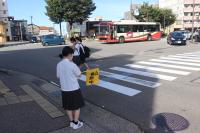 9月5日(月)~9日(金)、午前7時50分~8時20分の登校時間帯においてPTA役員(保護者)、地域婦人会、公安委員(生徒)、教職員合わせて71名が、通学時の「中高生グッドマナーキャンペーン」を学校近隣の横断歩道で実施しました。