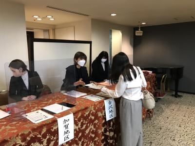 県内各学校からPTA会長、学校長、総務課長が出席され、本校の中村会長が議長を務めました。今年は石川県で全国大会が開催されるので、PR動画制作のため、総会後に全員が同会場で「来まっし~」と石川弁で撮影しました。