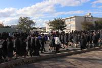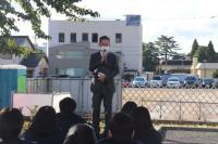 講評の中で校長先生は、寒くなり火を使用する機会が増えることで、火災が起こりやすくなることや、万一、衣服に火が燃え移ったときの対処方法を生徒へ伝えました。