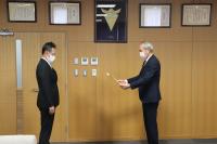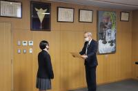 今年は応募作品の中から、表帆風(ほのか)さん(2年)が「金沢税務署長賞」を受賞し、本日、金沢税務署より「表彰伝達」が行われました。