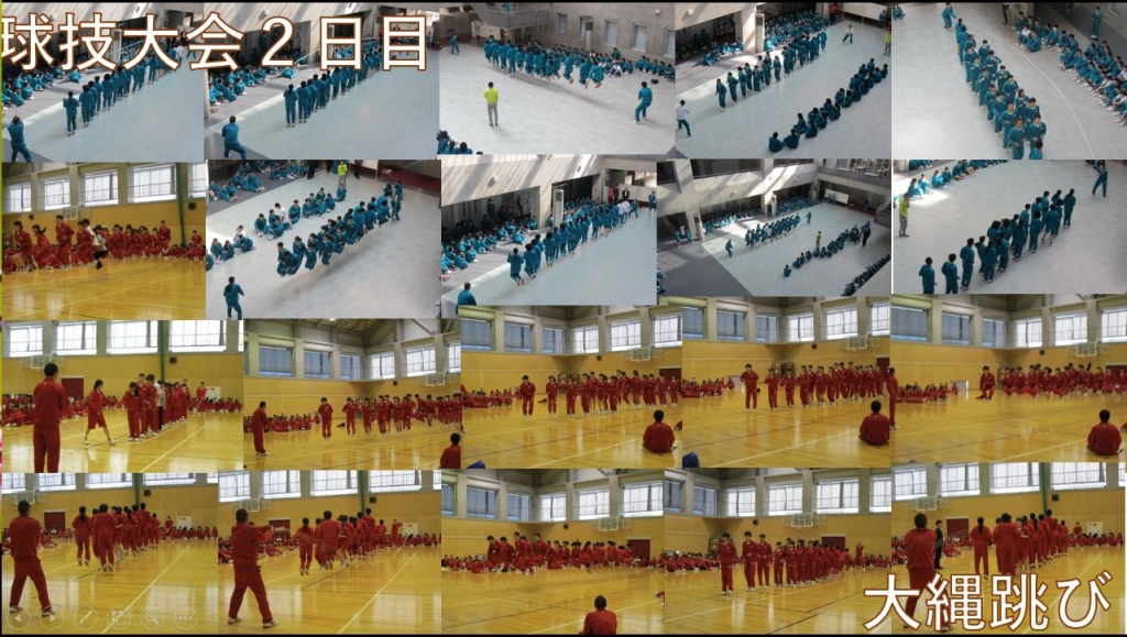 球技大会2日目大縄跳びを行ってます。