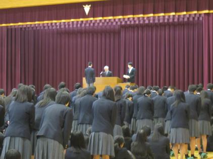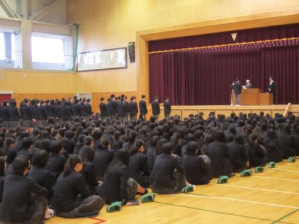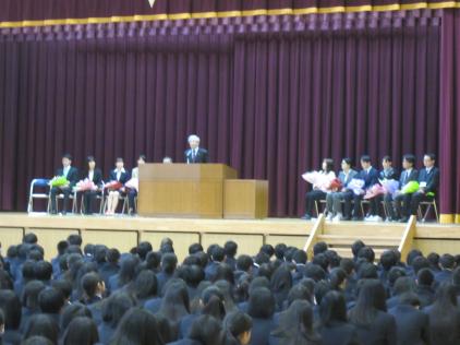3学期終業式、離任式・退任式、皆勤賞などの表彰を行いました。