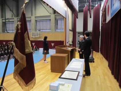 2/28 表彰式・同窓会奨学奨励賞授与式・同窓会入会式を行いました。