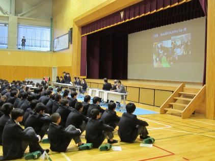3年生の進路に向けての取り組みを1・2年生が聞くパネルディスカッションを行います。