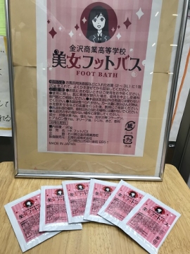 金商生企画商品の足湯用入浴剤「金商美女フゥトバス」が完成しました。平成29年12月10日(日)に開催された「いしかわ産業フェア2017」(県産業展示館2号館)でお目見えしました。