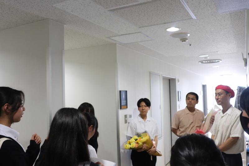 また講演後には、本校の演劇部と交流会をしていただきました。腹式呼吸の練習方法の実践や多くの質問にお答えいただき、とても勉強になりました。ご指導を生かして大会にむけて練習を頑張っていきたいと思います。