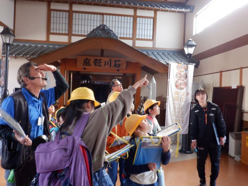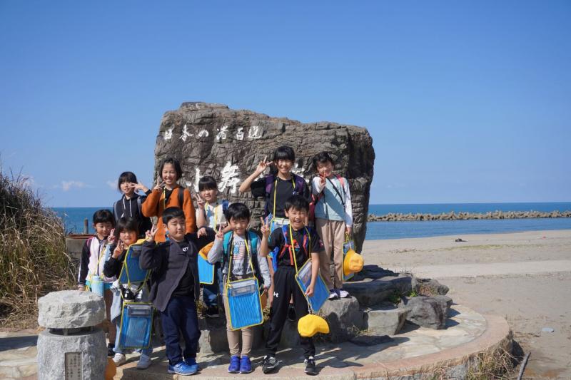 秋晴の中、秋の校外学習として全校児童10名で美川方面に出かけてきました。 めあては、「①白山手取川ジオパーク(海側)の様子を見学したり、観察したりしてジオパークのすばらしさについて知る」「②水の旅のスタート地点(白峰地区)とゴール地点(美川地区)の様子を比べながら見学し、その様子の違いについて考える」「③公共のマナー、集団行動の仕方を身につける」です。 石川ルーツ交流館でジオパーク支援員さんと合流し、その後、美川漁港やふぐの加工場などいろいろなお話をお聞きしながら美川地区を散策しました。低学年には、少し難しいお話でしたが、みんなしっかりと聞いていました。 最後に小舞子海岸に行きました。海が初めてだという児童もおり、海水にふれたり、しょっぱさに驚いたりしていました。ここで、お弁当も食べました。海から吹く心地よい風にお弁当も一段と美味しかったようです。 帰校途中に、綿ゲ滝も見学してきました。水量がたっぷりで迫力満点でした。 子どもたちはきっと、白峰地区と美川地区を比べ、違いやそれぞれのよさに気づくことができたと思います。また、白山手取川ジオパークのすばらしさを改めて実感できたことでしょう。実に学びの多い1日でした。 保護者の皆様には、校外学習の準備やお弁当の準備等していただき、ありがとうございました。