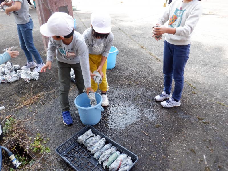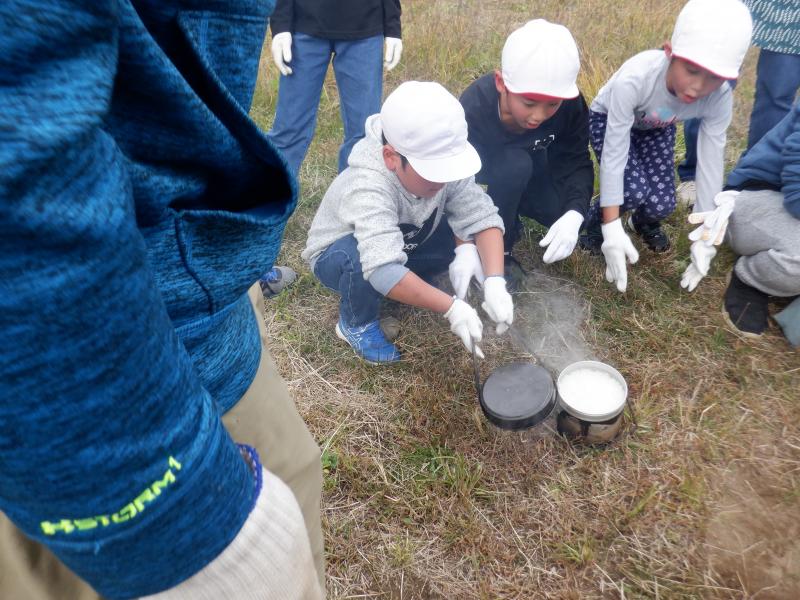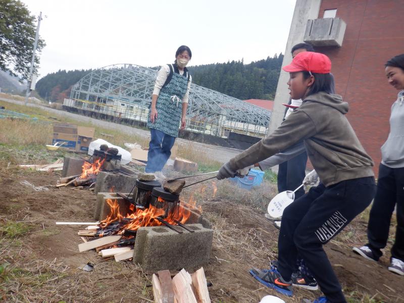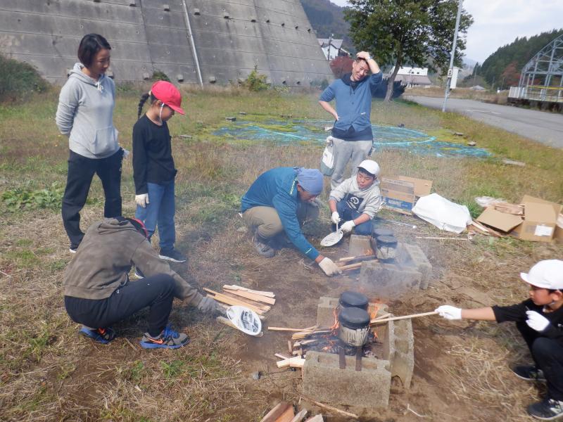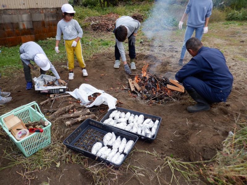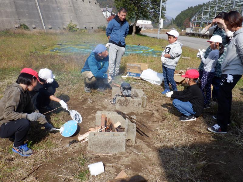 今年度初めての取組として全校で「収穫祭」を行いました。 収穫祭では、地域の方にご指導いただきながら田植えや稲刈りをしたお米と学校農園で育てた野菜を使って、飯ごうで炊いたご飯、焼き芋、めった汁を作りました。また、いしかわ教育ウィークに合わせて保護者の方々にもお声かけし、ご協力いただきました。そして、学習などでお世話になった地域の方々を招待し、調理したお料理を一緒に食べました。 調理は、飯ごう炊飯チームと焼き芋チームに分かれて行いました。(めった汁は職員チームです)火起こしは子どもたちにとって初めての経験です。もくもくと上がる煙にむせながらも、小枝や木切れをくべたり、うちわで扇いだりしながらしっかりと火の管理ができました。飯ごうでご飯が炊き上がり、蓋を取ったときには「おぉ~」の歓声と同時に自然と拍手が起こりました。焼き芋チームは、40本のさつまいもをきれいに洗い、新聞紙で巻いてぬらし、アルミホイルで包む作業を行いました。たくさんあったので大変でしたが、みんなで協力してできました。 さて、いよいよみんなでいただく時間がやってきました。青空の下、自分たちの育てた野菜を使ったお料理は、最高に美味しかったようで、ほとんど全員がおかわりをして食べていました。お世話になった地域の方やお家の方も一緒だったので、余計に美味しかったのかもしれません。 さて、この会では、初めて3年生の子どもたちが司会進行等を行いました、また、3年生が国語科の学習と関連づけて、招待した地域の皆さんに感謝の気持ちを伝えるための発表(全校ダンス)を計画してくれました。3年生の呼びかけで昼休みを利用しダンスや感謝の言葉の練習を何度か行い、当日は、来てくださった皆様に喜んでいただくことができました。3年生が練習の目的や動きの指示など適切に伝える姿とそれをしっかりと聞き、真剣に練習する姿に驚きと感動を覚えました。特に5・6年生が3年生を温かく見守り、その通りに行動する姿は本当に立派であり、よい雰囲気の中、楽しく練習ができました。子どもたちのおかげで、食に感謝、人に感謝、自然に感謝、地域に感謝・・・など、たくさんの感謝の気持ちが育まれた素晴らしい収穫祭になりました。
